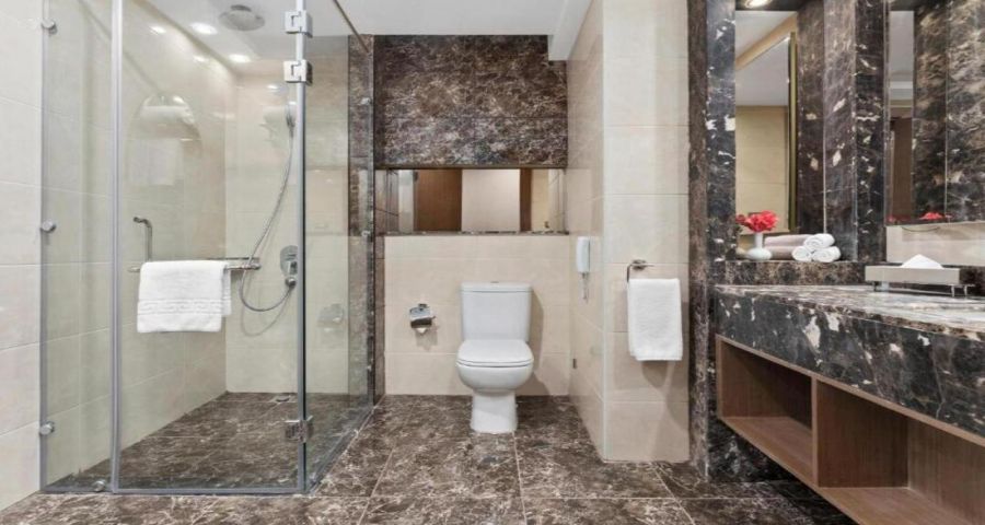 - баня с душ или вана, сешоар и козметика