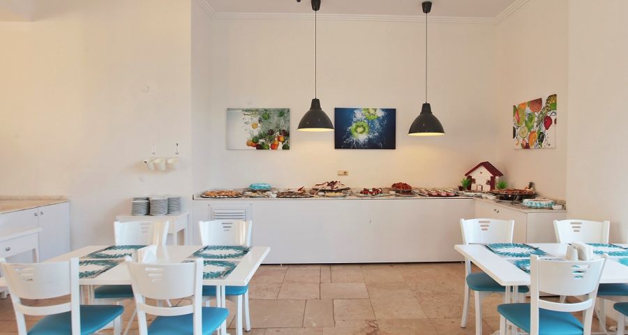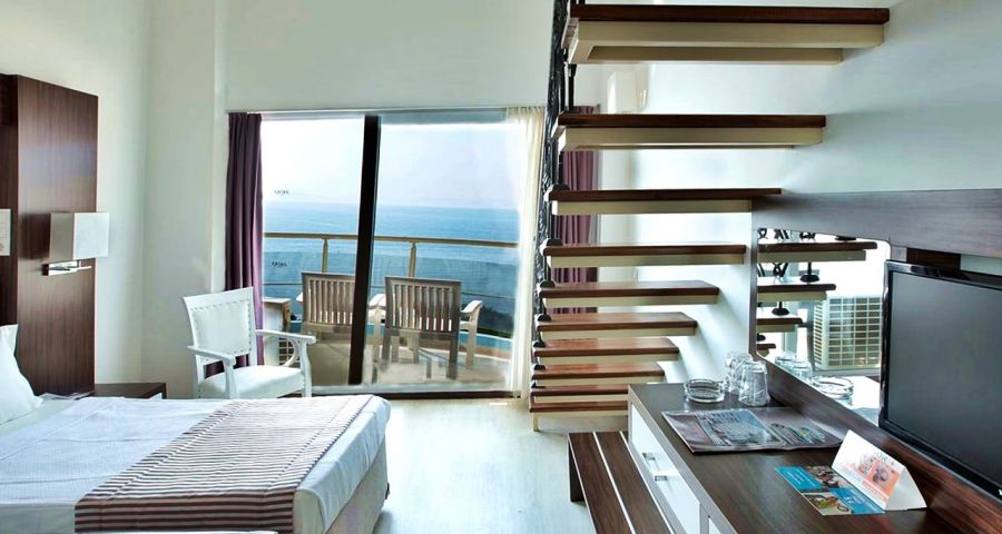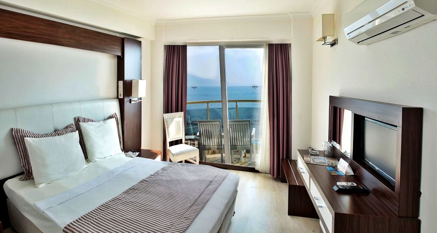 Хотелът разполага 137 стаи, от които 127 стандартни (103 с изглед море и 24 с изглед градина, 20-24 м²), 8 дуплекс фамилни (2 единични легла на долния етаж и спалня на горния етаж, без свързваща врата, 25-26 м²), 1 суит и 1 disabled (пригоденa за хора с ограничена подвижност - 30 м²). Всички стаи са оборудвани с климатик, телевизор, телефон, баня с душ/вана, сешоар, минибар, сейф (безплатен), балкон.